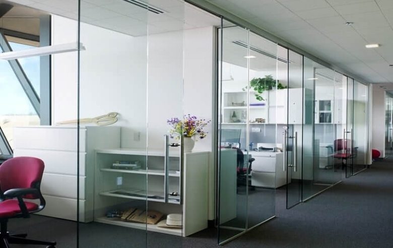 Glass partitions contribute to a modern and sleek office design, creating an open and spacious atmosphere that enhances the overall aesthetic ...